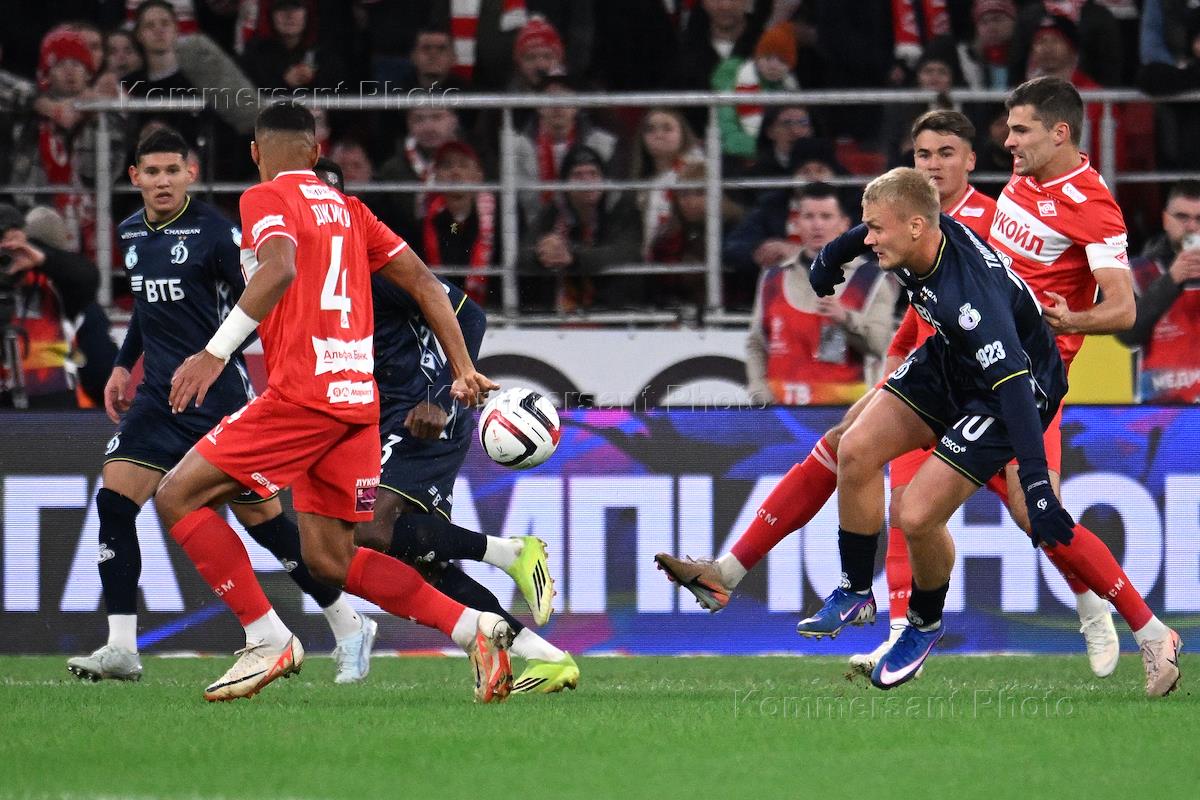 Фонбет - Кубок России по футболу 2025/26. 1/2 финала. Матч между командами "Спартак" (Москва) - "Динамо" (Москва) на стадионе "Лукойл Арена". Игрок команды "Спартак" Манфред Угальде (в центре) во время матча.