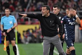 Фонбет - Кубок России по футболу 2025/26. 1/2 финала. Матч между командами "Спартак" (Москва) - "Динамо" (Москва) на стадионе "Лукойл Арена". Главный тренер команды "Спартак" Хуан Карлос Карседо (в центре) во время матча.