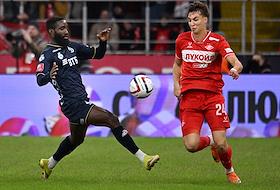 Фонбет - Кубок России по футболу 2025/26. 1/2 финала. Матч между командами "Спартак" (Москва) - "Динамо" (Москва) на стадионе "Лукойл Арена". Игрок команды "Спартак" Манфред Угальде (в центре) во время матча.