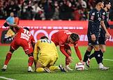 Фонбет - Кубок России по футболу 2025/26. 1/2 финала. Матч между командами "Спартак" (Москва) - "Динамо" (Москва) на стадионе "Лукойл Арена". Вратарь команды "Динамо" Курбан Расулов (второй справа) во время матча.