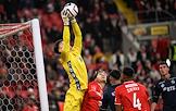 Фонбет - Кубок России по футболу 2025/26. 1/2 финала. Матч между командами "Спартак" (Москва) - "Динамо" (Москва) на стадионе "Лукойл Арена". Вратарь команды "Динамо" Курбан Расулов во время матча.