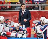 Континентальная Хоккейная Лига (КХЛ). Матч между командами "Спартак" (Москва) - ЦСКА (Москва) на стадионе "Мегаспорт". Главный тренер команды ЦСКА Игорь Никитин (в центре) во время матча.