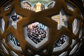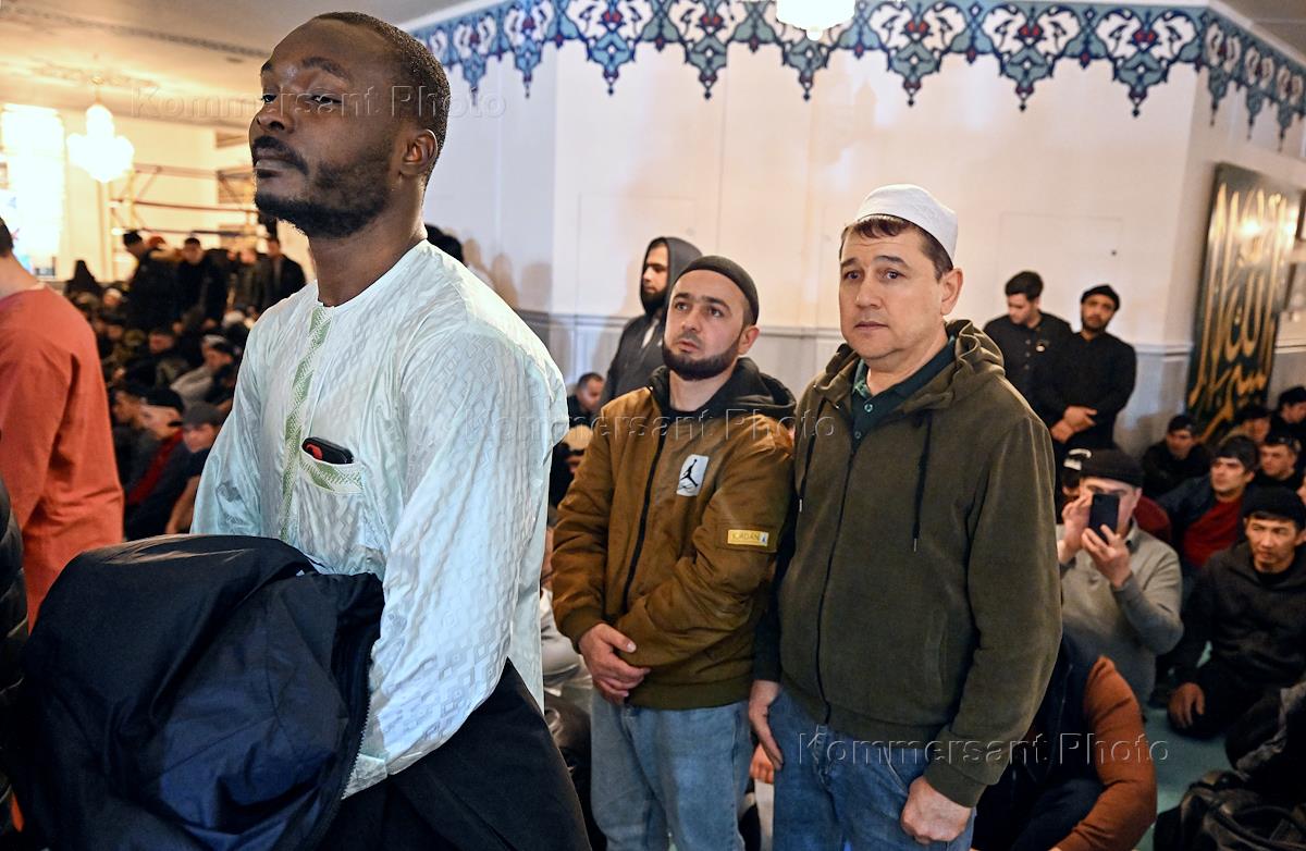 Праздничные мероприятия в день Ураза-Байрам. Мусульмане в Московской Соборной мечети.