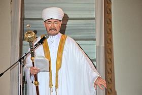 Праздничные мероприятия в день Ураза-Байрам. Муфтий, председатель Духовного управления мусульман России, председатель Совета муфтиев России Равиль Гайнутдин во время молитвы в Московской Соборной мечети.