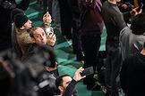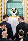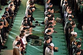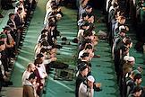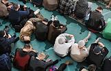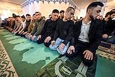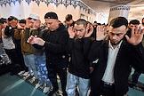 Праздничные мероприятия в день Ураза-Байрам. Муфтий, председатель Духовного управления мусульман России, председатель Совета муфтиев России Равиль Гайнутдин (в центре) во время молитвы в Московской Соборной мечети.