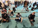 Праздничные мероприятия в день Ураза-Байрам. Верующие во время молитвы в Московской Соборной мечети.