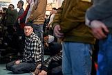 Праздничные мероприятия в день Ураза-Байрам. Мусульмане во время молитвы в Московской Соборной мечети.