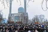 Праздничные мероприятия в день Ураза-Байрам. Верующие у Санкт-Петербургской Соборной мечети.