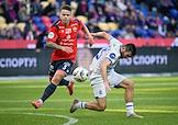 Мир Российская Премьер-Лига (РПЛ) 2025/2026. 21-й тур. Матч между командами ЦСКА (Москва) - "Динамо Мх" (Махачкала) на стадионе "ВЭБ Арена". Игрок команды ЦСКА Данил Круговой (слева) во время матча.