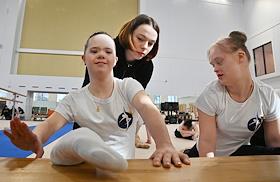 Открытая тренировка по художественной гимнастике для детей с синдромом дауна, организованная международным Фондом развития и поддержки спорта, художественной гимнастики и социальных проектов для детей с интеллектуальными нарушениями, во Дворце гимнастики Ирины Винер.