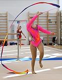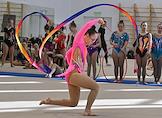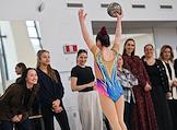 Открытая тренировка по художественной гимнастике для детей с синдромом дауна, организованная международным Фондом развития и поддержки спорта, художественной гимнастики и социальных проектов для детей с интеллектуальными нарушениями, во Дворце гимнастики Ирины Винер. Чемпионка мира по художественной гимнастике среди юниоров Варвара Смирнова во время выступления на тренировке.