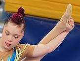 Открытая тренировка по художественной гимнастике для детей с синдромом дауна, организованная международным Фондом развития и поддержки спорта, художественной гимнастики и социальных проектов для детей с интеллектуальными нарушениями, во Дворце гимнастики Ирины Винер. Чемпионка мира по художественной гимнастике среди юниоров Варвара Смирнова во время тренировки.