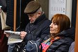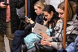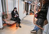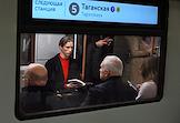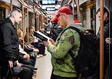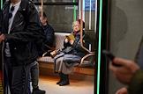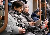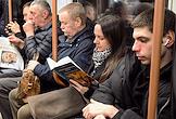 Жанровая фотография. Пассажиры московского метрополитена в вагоне поезда.