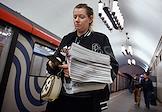Жанровая фотография. Женщина с пачкой газет на платформе московского метрополитена.