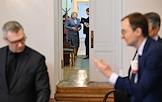 Заседание комитета по культуре Государственной думы (ГД) России в ГД России. Первый заместитель министра культуры России Сергей Обрывалин (слева) перед началом заседания.