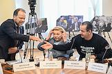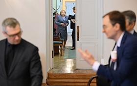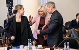 Заседание комитета по культуре Государственной думы (ГД) России в ГД России. Слева направо: директор департамента кинематографии министерства культуры России Анна Ярина, председатель комитета ГД России по культуре Ольга Казакова и первый заместитель министра культуры России Сергей Обрывалин перед началом заседания.