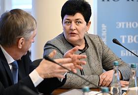 Заседание комитета по культуре Государственной думы (ГД) России в ГД России. Первый заместитель председателя комитета ГД России по культуре Елена Драпеко (в центре) перед началом заседания.