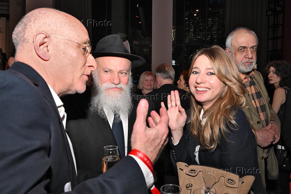 Церемония вручения XIV ежегодной премии газеты The Art Newspaper Russia в театре "Мастерская Петра Фоменко". Слева направо: основатель VI Community Ирина Вольская, предприниматель и сооснователь благотворительного фонда "Друзья" Ян Яновский, ресторатор Александр Раппопорт и президент Федерации еврейских общин России (ФЕОР), генеральный директор Еврейского музея и центра толерантности Александр Борода на церемонии.