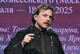 Церемония вручения XIV ежегодной премии газеты The Art Newspaper Russia в театре "Мастерская Петра Фоменко". Актер Артем Ткаченко во время выступления на церемонии.