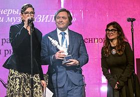 Церемония вручения XIV ежегодной премии газеты The Art Newspaper Russia в театре "Мастерская Петра Фоменко". Основатель музея "ЗИЛАРТ", генеральный директор, член Совета директоров ПАО "Группа ЛСР" Андрей Молчанов на церемонии.