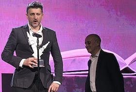 Церемония вручения XIV ежегодной премии газеты The Art Newspaper Russia в театре "Мастерская Петра Фоменко". Режиссер Андрей Житинкин (справа) на церемонии.