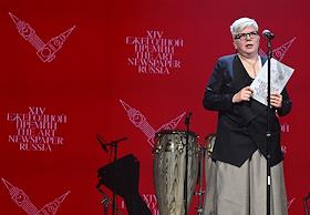 Церемония вручения XIV ежегодной премии газеты The Art Newspaper Russia в театре "Мастерская Петра Фоменко". Главный редактор The Art Newspaper Russia Милена Орлова на церемонии.