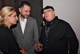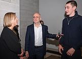 Церемония вручения XIV ежегодной премии газеты The Art Newspaper Russia в театре "Мастерская Петра Фоменко". Слева направо: галерист Кристина Сасонко, ювелир Григорий Сасонко и совладелец галереи "Триумф" Дмитрий Ханкин на церемонии.