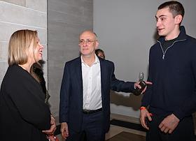 Церемония вручения XIV ежегодной премии газеты The Art Newspaper Russia в театре "Мастерская Петра Фоменко". Слева направо: искусствовед, арт-менеджер Михаил Каменский, президент Федерации еврейских общин России (ФЕОР), генеральный директор Еврейского музея и центра толерантности Александр Борода, исполнительный директор Еврейского музея и центра толерантности Кристина Краснянская и директор Центрального музея древнерусского искусства имени Андрея Рублева Михаил Миндлин на церемонии.