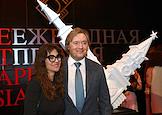 Церемония вручения XIV ежегодной премии газеты The Art Newspaper Russia в театре "Мастерская Петра Фоменко". Продюсер, режиссер-постановщик Алексей Агранович (слева) и актриса Виктория Толстоганова (справа) на церемонии.