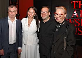 Церемония вручения XIV ежегодной премии газеты The Art Newspaper Russia в театре "Мастерская Петра Фоменко". Слева направо: основатель VI Community Ирина Вольская, предприниматель и сооснователь благотворительного фонда "Друзья" Ян Яновский, ресторатор Александр Раппопорт и президент Федерации еврейских общин России (ФЕОР), генеральный директор Еврейского музея и центра толерантности Александр Борода на церемонии.