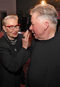 Церемония вручения XIV ежегодной премии газеты The Art Newspaper Russia в театре "Мастерской Петра Фоменко". Директор Центрального музея древнерусского искусства имени Андрея Рублева Михаил Миндлин (слева) и художник Александра Вертинская (справа) во время церемонии.