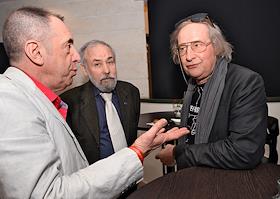 Церемония вручения XIV ежегодной премии газеты The Art Newspaper Russia в театре "Мастерская Петра Фоменко". Слева направо: ресторатор Александр Раппопорт, предприниматель и сооснователь благотворительного фонда "Друзья" Ян Яновский и издатель российской газеты The Art Newspaper Russia Ольга Ярутина на церемонии.