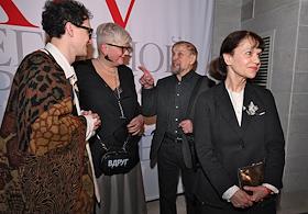 Церемония вручения XIV ежегодной премии газеты The Art Newspaper Russia в театре "Мастерская Петра Фоменко". Слева направо: коллекционер Антон Козлов, главный редактор The Art Newspaper Russia Милена Орлова, художник Борис Орлов и арт-менеджер, искусствовед Марина Лошак на церемонии.