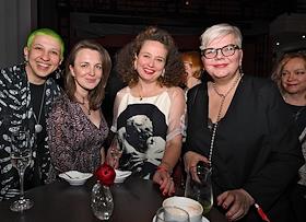 Церемония вручения XIV ежегодной премии газеты The Art Newspaper Russia в театре "Мастерская Петра Фоменко". Справа налево: главный редактор The Art Newspaper Russia Милена Орлова, писатель Лев Данилкин, директор Центра Вознесенского Ольга Варцева и куратор выставки "Темная оттепель" Татьяна Сохарева на церемонии.