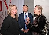 Церемония вручения XIV ежегодной премии газеты The Art Newspaper Russia в театре "Мастерская Петра Фоменко". Директор Фонда содействия развитию современного искусства RuArts Марианна Сардарова (в центре) и арт-директор фонда и галереи Ruarts Катрин Борисов (слева) и коллекционер Дмитрий Володин (справа) на церемонии.