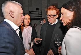 Церемония вручения XIV ежегодной премии газеты The Art Newspaper Russia в театре "Мастерская Петра Фоменко". Коллекционеры Антон Козлов (в центре) и Алексей Прийма (справа) на церемонии.