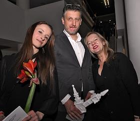 Церемония вручения XIV ежегодной премии газеты The Art Newspaper Russia в театре "Мастерская Петра Фоменко". Слева направо: продюсер, режиссер-постановщик Алексей Агранович, заместитель главного редактора газеты The Art Newspaper Russia Татьяна Маркина и главный редактор газеты The Art Newspaper Russia Милена Орлова на церемонии.