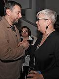 Церемония вручения XIV ежегодной премии газеты The Art Newspaper Russia в театре "Мастерская Петра Фоменко". Директор Мультимедиа Арт Музея Ольга Свиблова (слева) и основатель и генеральный директор компании "Экспо-парк Выставочные проекты" Василий Бычков (справа) на церемонии.