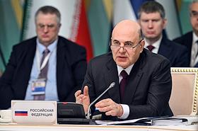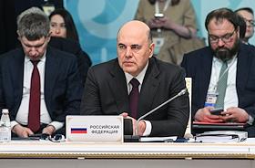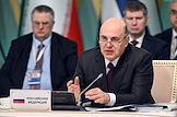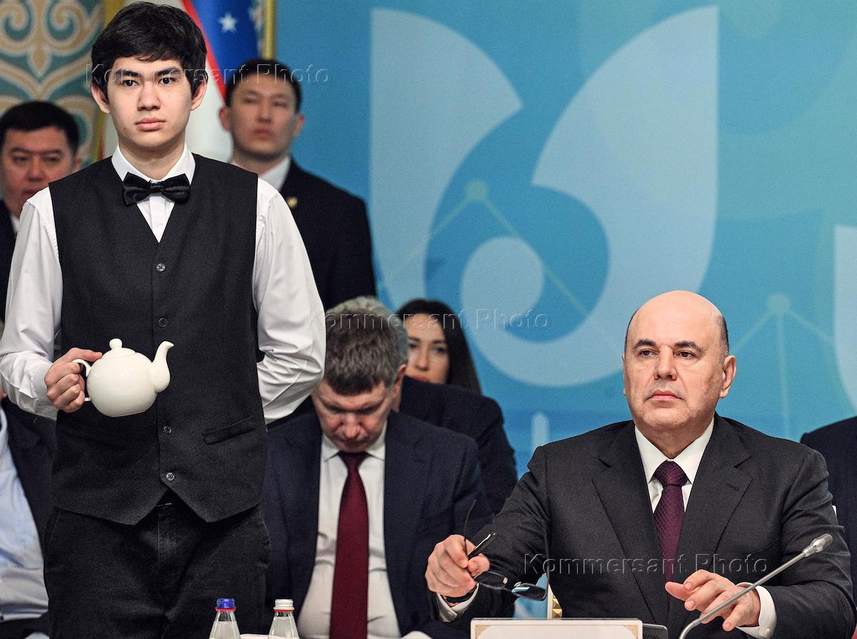 Рабочая поездка председателя правительства России Михаила Мишустина в Казахстан. Заседание Евразийского межправительственного совета в расширенном составе. Председатель правительства России Михаил Мишустин во время заседания.
