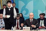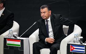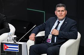 Рабочая поездка председателя правительства России Михаила Мишустина в Казахстан. Международный цифровой форум "Digital Qazaqstan 2026" в культурном центре QYZGALDAQ SARAIY. Заместитель премьер-министра, министр внешней торговли и иностранных инвестиций Кубы Перес-Олива Фрага во время пленарной сессии.
