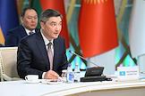 Рабочая поездка председателя правительства России Михаила Мишустина в Казахстан. Международный цифровой форум "Digital Qazaqstan 2026" в культурном центре QYZGALDAQ SARAIY. Председатель Кабинета министров Киргизии – Руководитель Администрации Президента Киргизии Адлыбек Касымалиев во время пленарной сессии.