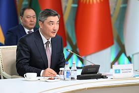 Рабочая поездка председателя правительства России Михаила Мишустина в Казахстан. Заседание Евразийского межправительственного совета в расширенном составе. Премьер-министр Казахстана Олжас Бектенов во время заседания.