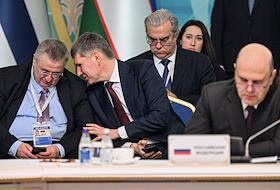 Рабочая поездка председателя правительства России Михаила Мишустина в Казахстан. Заседание Евразийского межправительственного совета в расширенном составе. Статс-секретарь – заместитель министра финансов России Алексей Сазанов перед началом заседания.