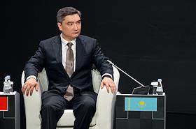 Рабочая поездка председателя правительства России Михаила Мишустина в Казахстан. Международный цифровой форум "Digital Qazaqstan 2026" в культурном центре QYZGALDAQ SARAIY. Премьер-министр Казахстана Олжас Бектенов во время пленарной сессии.