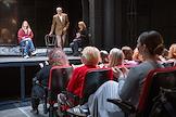 Встреча с артистами спектакля "Чайка" Малого драматического театра (МДТ) Европы на Основной сцене МДТ в рамках Всемирного дня театра. Жанровая фотография. Зрители перед началом встречи.