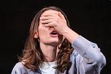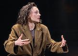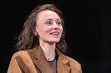 Встреча с артистами спектакля "Чайка" Малого драматического театра (МДТ) Европы на Основной сцене МДТ в рамках Всемирного дня театра. Актриса Полина Севастьянихина на сцене во время встречи.