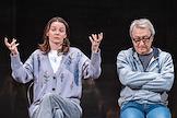 Встреча с артистами спектакля "Чайка" Малого драматического театра (МДТ) Европы на Основной сцене МДТ в рамках Всемирного дня театра. Актеры Елизавета Боярская (слева) и Игорь Черневич (справа) на сцене во время встречи.