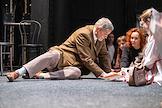 Встреча с артистами спектакля "Чайка" Малого драматического театра (МДТ) Европы на Основной сцене МДТ в рамках Всемирного дня театра. Актер Евгений Зайфрид на сцене во время встречи.