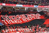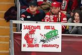 Континентальная Хоккейная Лига (КХЛ). Плей-офф 1/8 финала Кубка Гагарина. Матч между командами "Спартак" (Москва) - "Локомотив" (Ярославль) на стадионе "Мегаспорт". Трибуна болельщиков команды "Спартак" на стадионе.