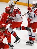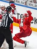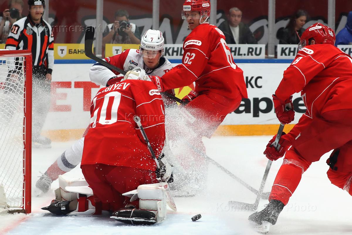 Континентальная Хоккейная Лига (КХЛ). Плей-офф 1/8 финала Кубка Гагарина. Матч между командами "Спартак" (Москва) - "Локомотив" (Ярославль) на стадионе "Мегаспорт".
